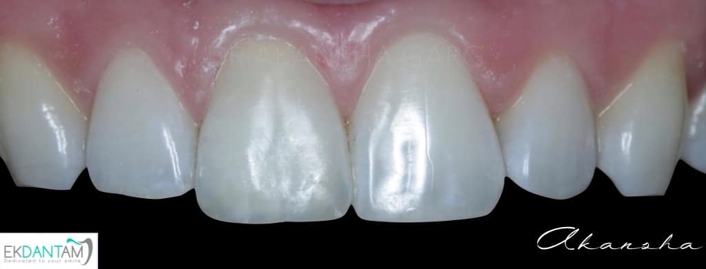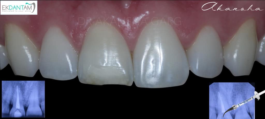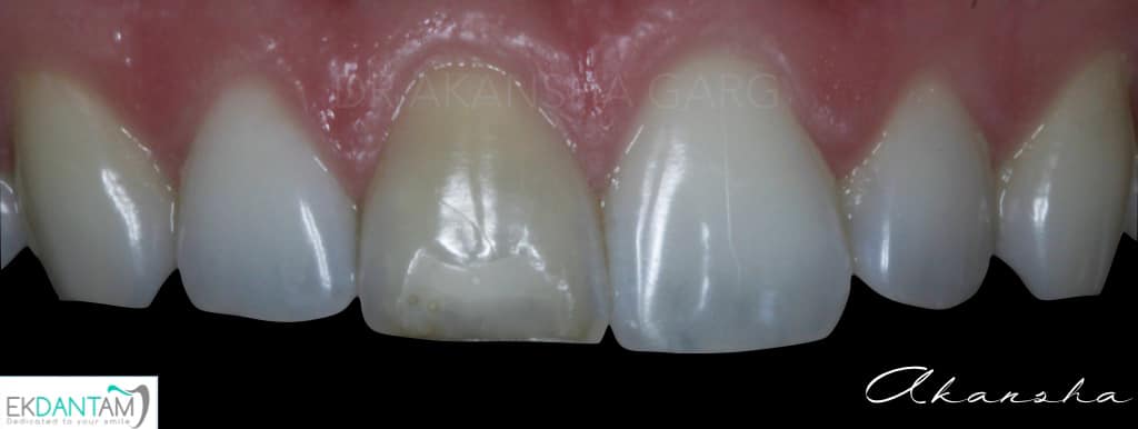 Being gentle to Tooth. It sounds very easy to do subtractive dentistry and grind the tooth and place Crown. The best dentistry is additive dentistry when you save what you have and just replace what’s missing. Case of discoloured tooth due to trauma and Rct years back. Non invasive approach- non vital bleaching followed by composite Incisal edge build up
